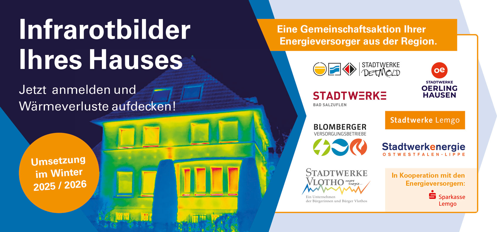 Unsere Thermografie-Aktion startet ab dem 05.01.2026 mit der Anmeldephase. Der Anmeldebogen wird ab dem 05.01.2026 zum Downloaden zur Verfügung stehen. Die Aufnahmen finden voraussichtlich im Februar 2026 statt.
